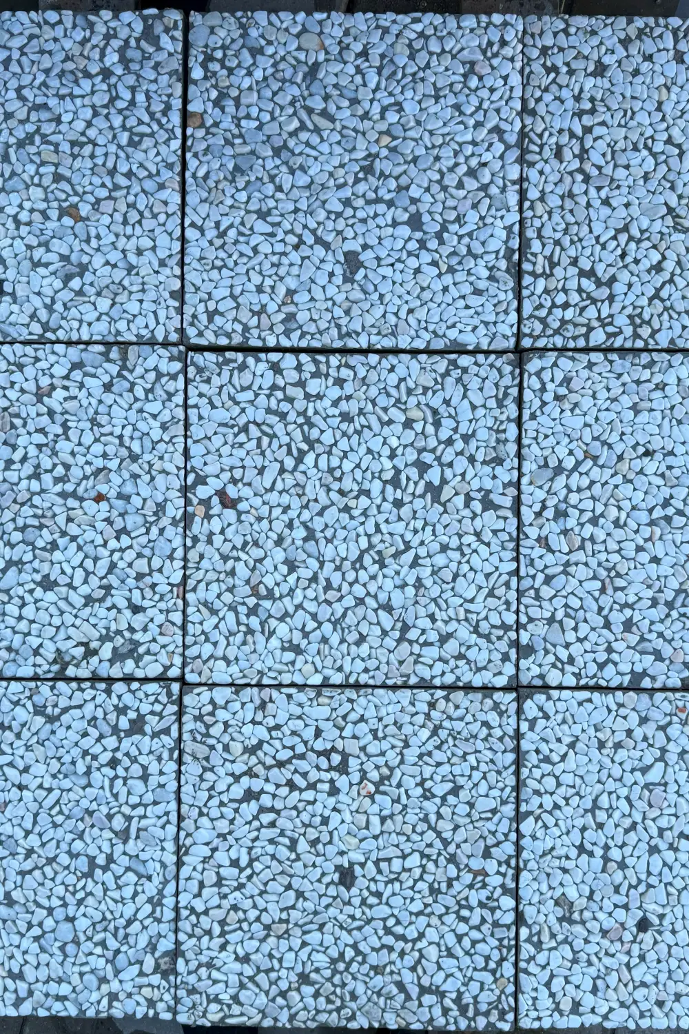 Bu karo, yüzeyindeki doğal taş agregaları ve kaliteli çimento bileşimiyle öne çıkar. Böylece zemin hem dekoratif görünür hem de tutuşu artıran dokulu bir yapı kazanır. Üstelik beyaz ton; minimal, modern ve sade projelerde net bir bütünlük sağlar.