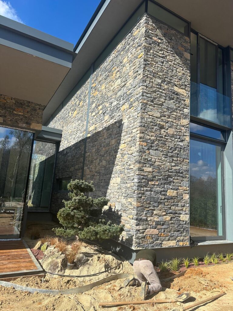 İstanbul Taşçı olarak, doğa ile iç içe bir yaşam sunan İstanbul Şile’deki özel bir villa projesinde, dış cepheye özel kırma kayrak taşı kaplama uygulamamızı başarıyla tamamladık.